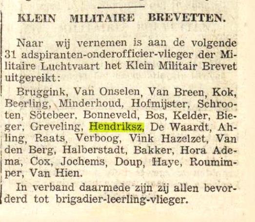 Bij aankomst in Indië zal hij worden bestemd voor de vliegeropleiding, welke aanvangt op 1 juli 1939. Wanneer mocht blijken, dat hij – om welke reden ook- ongeschikt wordt bevonden voor de vliegeropleiding c.q. opleiding tot monteur, dan zal hij naar het Wapen der Artillerie worden teruggeplaatst en zijn daarbij aangegaan verband hebben uit te dienen.-