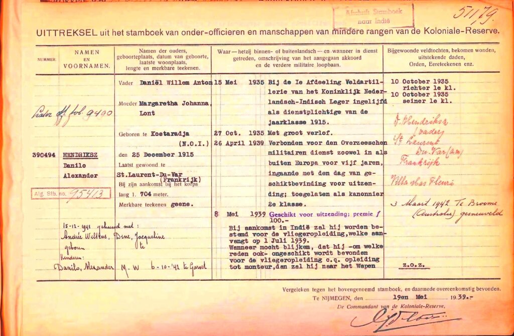 Danilo Alexander Hendriksz besloot om zijn militaire bloed te volgen en wilde naar ons Indië om daar te worden opgeleid tot militair vlieger.